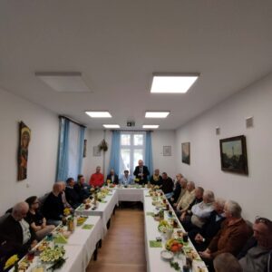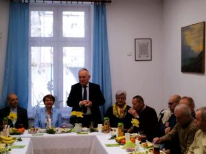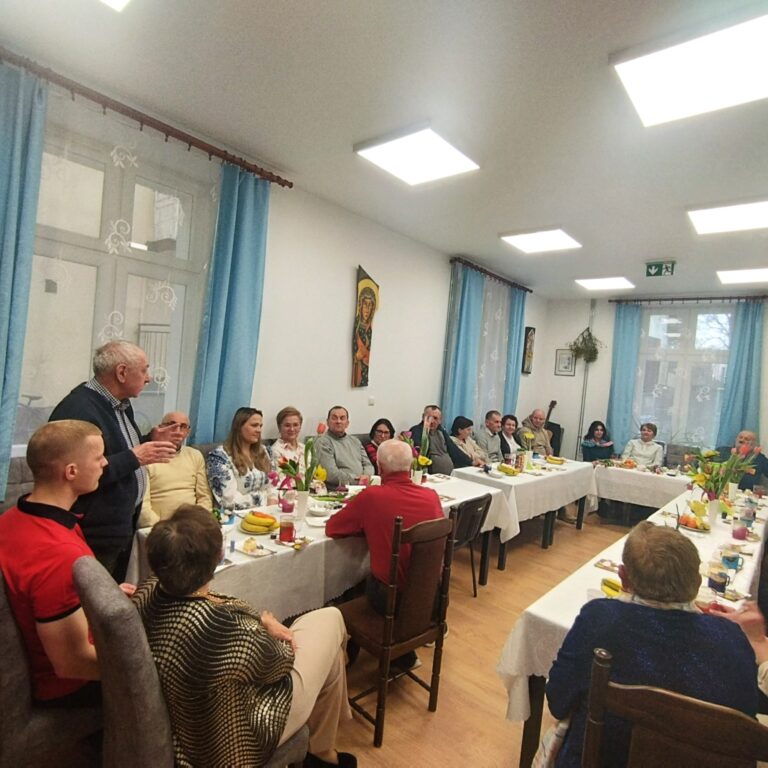 Na stole pojawiły się tradycyjne wielkanocne potrawy – jaja z majonezem i chrzanem, a także pyszne ciasta, kawa, owoce, słodycze i napoje. Dobra atmosfera sprzyjała rozmowom oraz wzajemnym podziękowaniom.